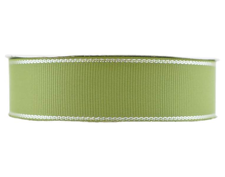 Лента репсовая с серебряной нитью Эвкалипт 25 мм * 22,85 м