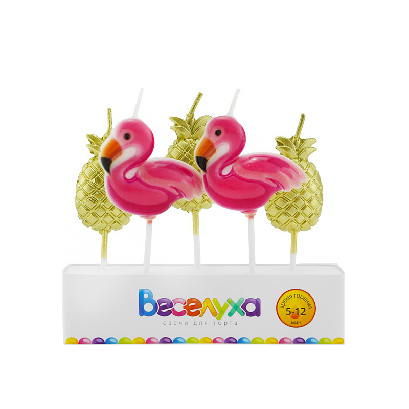 Набор свечей на шпажках "Фламинго и Ананас" / 5 шт., 6 см /
