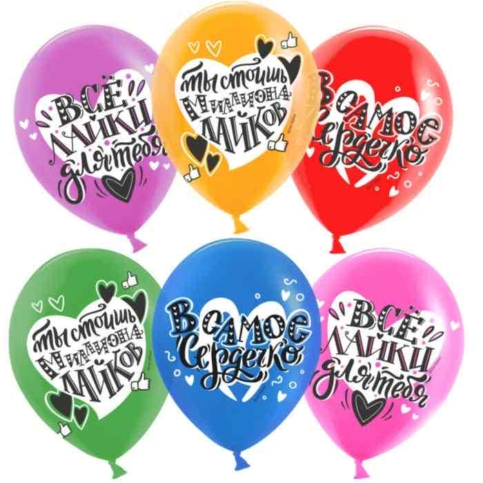 Шар (12""/30) Любовь с первого лайка, Ассорти,  пастель, 2 ст, 50 шт.