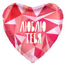 Шар (19""/48 см) Сердце, Люблю Тебя (геометрический узор), Розовый, 1 шт. Ж099