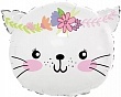 Шар (23""/58 см) Фигура, Котенок в цветах, Белый, 1 шт. Б4 ( 3 порции) Б012