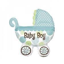 Шар (35''/89 см) Фигура, Коляска для мальчика, Голубой, 1 шт. А059 Б087