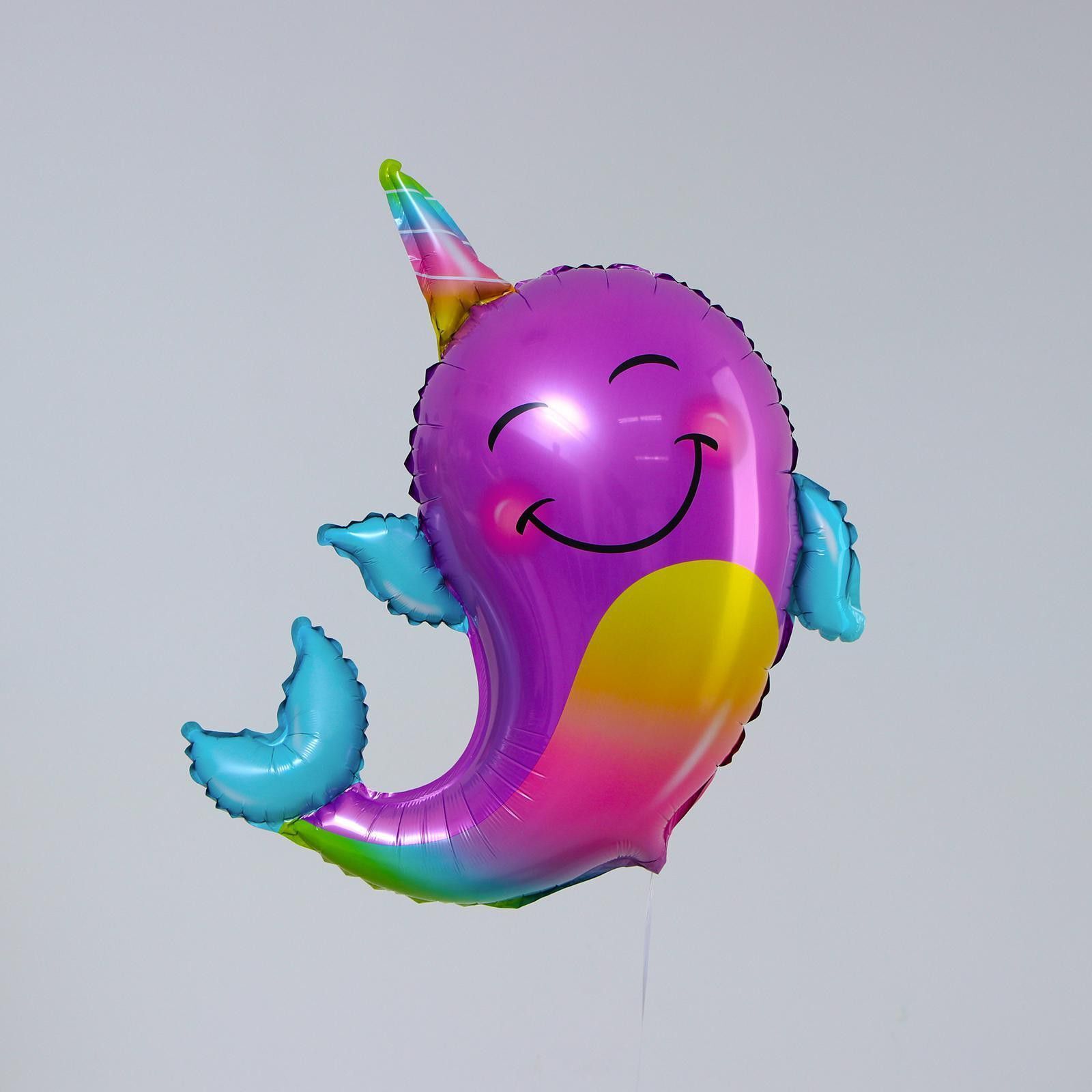 Шар фольгированный 28" "Кит Единорог", Нарвал, цвет фиолетовый Б226