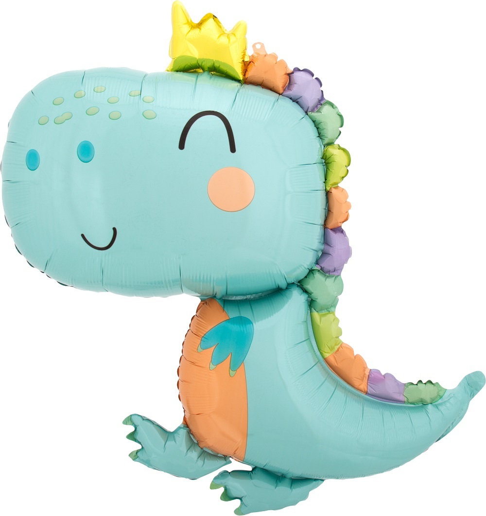 Шар с клапаном (14''/36 см) Мини-фигура, Динозаврик в короне, 1 шт. А197