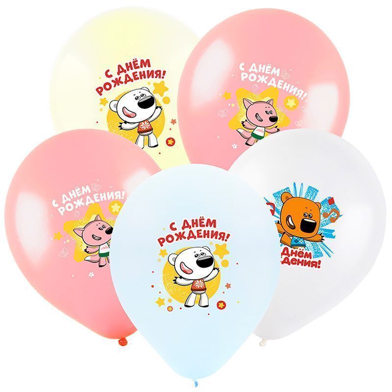 Т 12 Ми-Ми-Мишки С днем рождения 12" , Ассорти Пастель 5 цв. / 100 шт. /