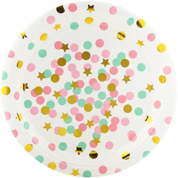 Тарелки (7""/18 см) Конфетти, Нежное ассорти, Металлик, 6 шт.