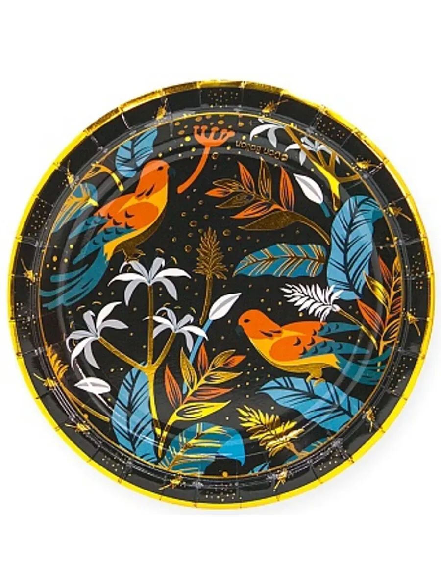 Тарелки (7""/18 см) Райские птицы, Черный, Металлик, 6 шт.